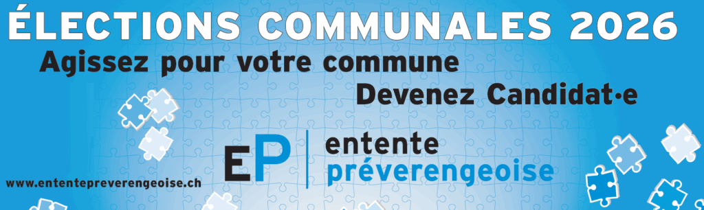 En mars 2026, les Vaudoises et les Vaudois éliront leurs autorités communales pour les cinq prochaines années. Vous vous sentez bien à Préverenges ? Vous souhaitez que votre commune continue à évoluer, à répondre aux besoins de ses habitant·e·s. Vous voulez renforcer le vivre ensemble ? ET SI CETTE FOIS VOUS PRENIEZ PART A SON AVENIR ? « Agissez pour Préverenges – Devenez candidat·e » Pour plus d’informations n’hésitez pas à nous contacter via : info@ententepreverengeoise.ch Vous pouvez également directement remplir le bulletin d’adhésion à l’Entente Préverengeoise Si vous souhaitez plus de détails sur le fonctionnement politique à l’échelon communal dans le canton de Vaud, vous pouvez vous référer à la présentation de M. Vincent Duvoisin (DGAIC) utilisée lors de la soirée publique d’information du 12 juin 2025 : « Le rôle des communes et conseillers communaux dans le système politique Vaudois »